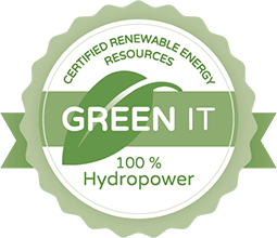 Zum Betrieb des Rechenzentrums wird 100 % Ökostrom aus Wasserkraftanlagen verwendet.